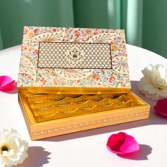 Cream Floral Sweet Box with bag (Pack of 10)